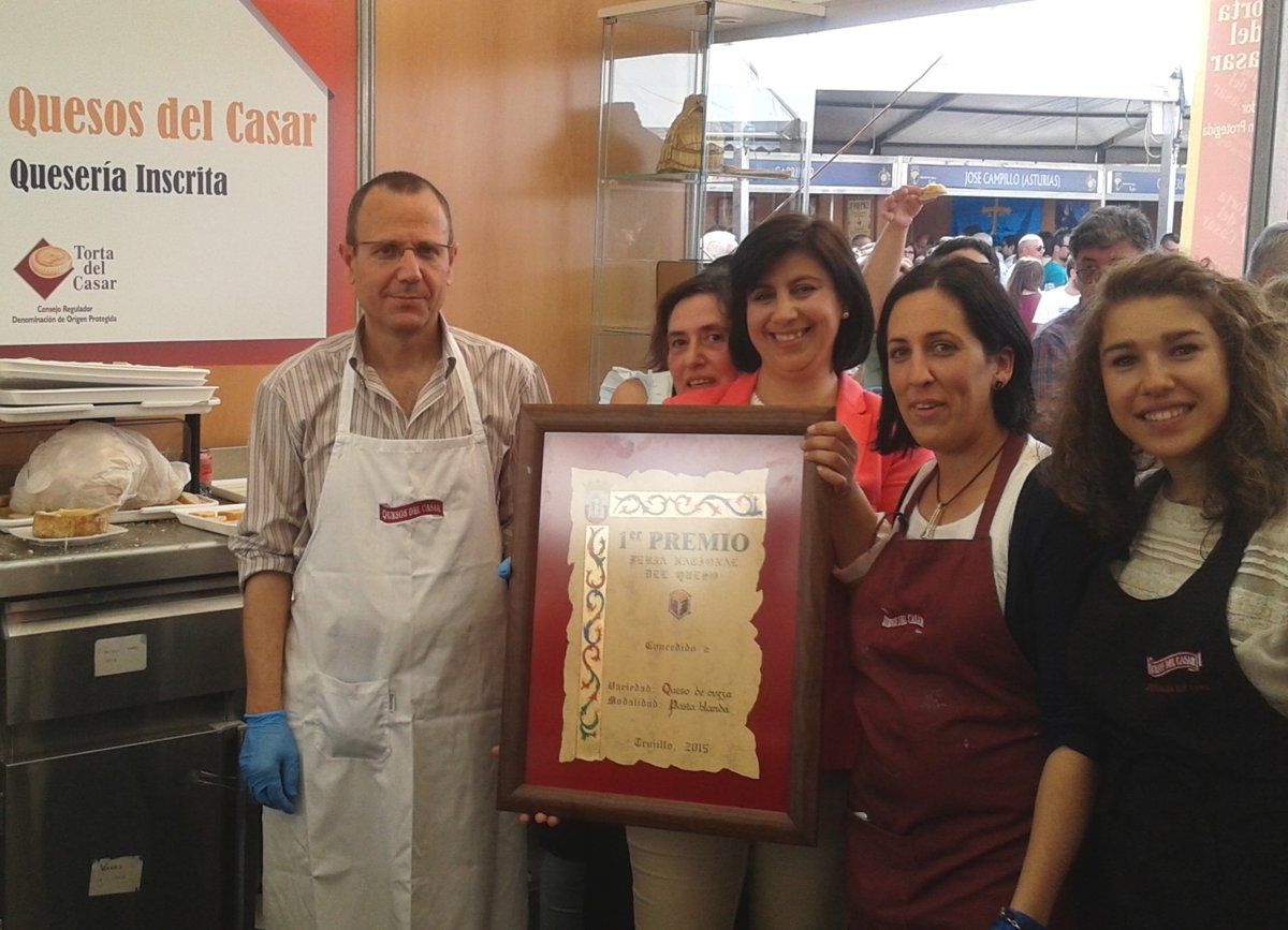 Casar de Cáceres, 5 de mayo de 2015.- La Torta del Casar 'Gran Casar' de la quesería inscrita Quesos del Casar S.L., de Casar de Cáceres, ha sido la ganadora en la modalidad de queso de oveja pasta blanda de la XXX cata - concurso de la Feria Nacional del Queso de Trujillo, dando a la Denominación de Origen su cuarto galardón consecutivo, y duodécimo en los 15 años en que se tiene presencia en esta feria.