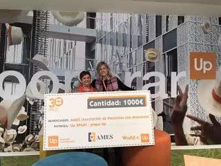 Up SPAIN, especializada en soluciones y beneficios sociales para empleados de todo tipo de empresas, que tiene como producto estrella Cheque Gourmet, entrega un Cheque Solidario a la Asociación de pacientes con Miastenia