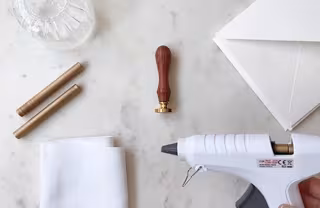 Materiales necesarios para lacrar una invitación de boda o un sobre: