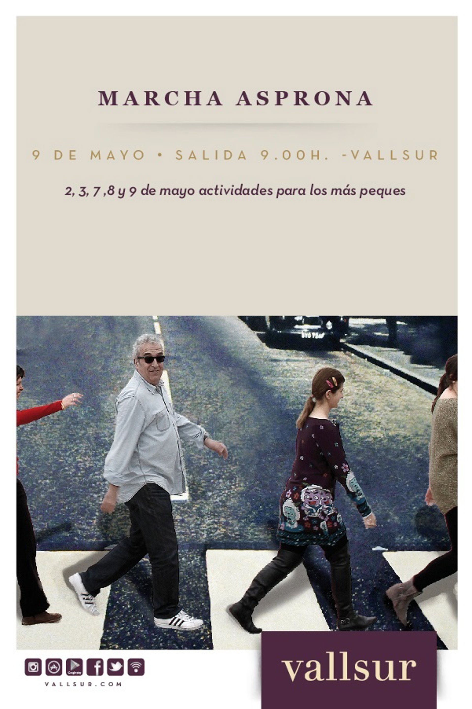 Vallsur patrocina de nuevo la Marcha Asprona que celebra su 38ª edición el próximo sábado 9 de mayo. La prueba comenzará en el centro comercial a las 09:00 horas y tras pasar por el Centro de Recursos Ambientales y el Colegio El Pinar terminará de nuevo en Vallsur tras un recorrido de 18 kilómetros.