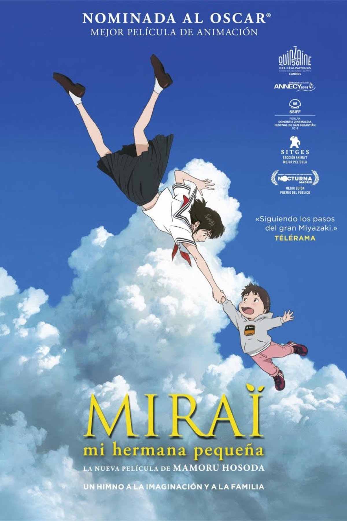 Mirai, mi hermana pequeña, dirigida por Mamoru Hosoda, cuenta la historia de Kun, un niño mimado y consentido de 4 años al que sus padres dejan de prestar atención cuando nace su hermana Mirai. Kun empieza a sufrir situaciones en casa que nunca había vivido, pero entonces, la versión adolescente de su hermana viaja en el tiempo desde el futuro para vivir junto a Kun una aventura extraordinaria más allá de lo imaginable.