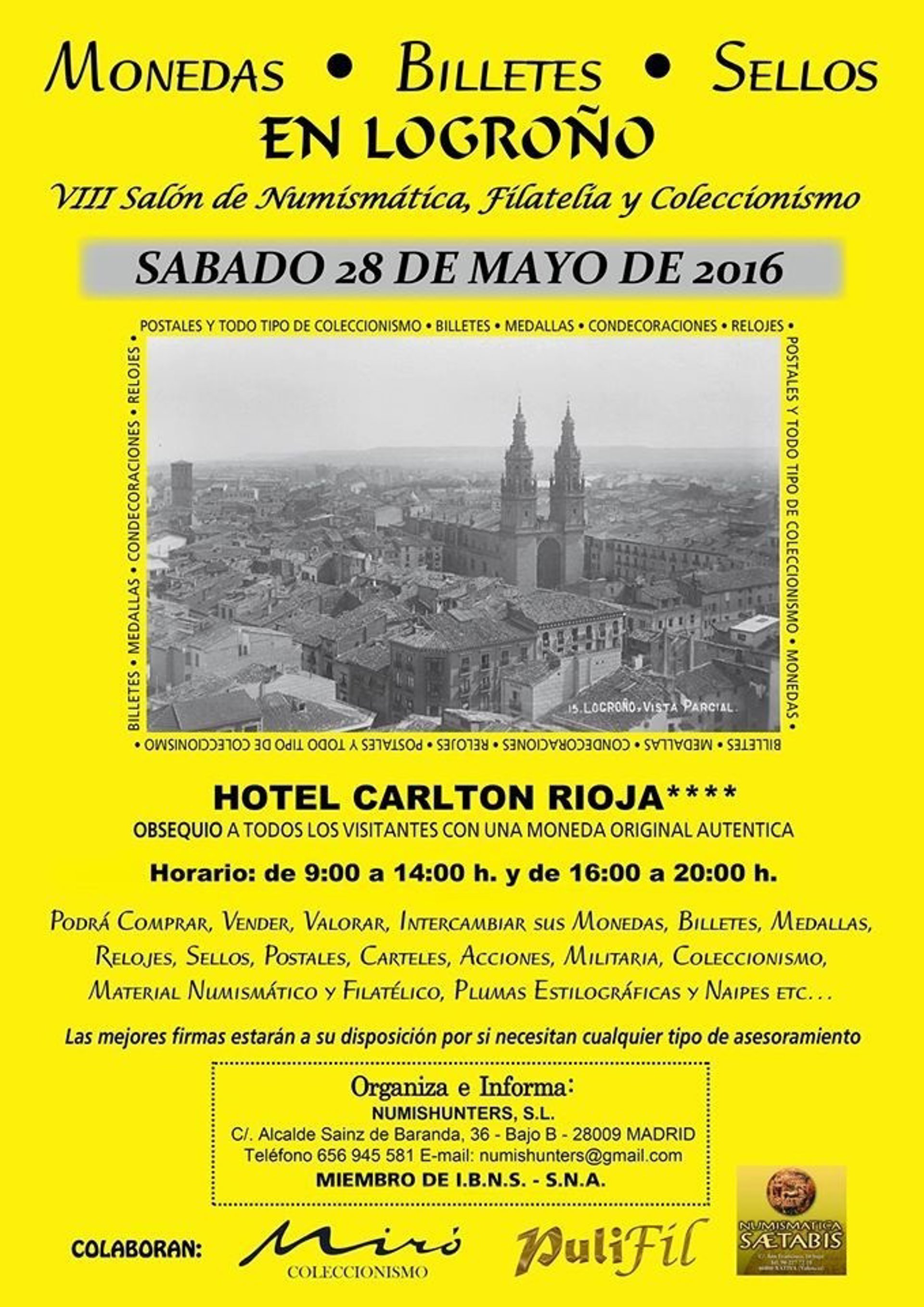 La empresa líder en organización de eventos numismáticos, NumisHunters SL, vuelve a apostar por octavo año consecutivo por la capital riojana para congregar a profesionales y coleccionistas venidos desde diferentes puntos del país