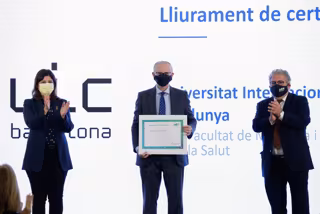 Durante el acto, el presidente de AQU Catalunya, Sr. Josep Joan Moreso, ha entregado el diploma oficial de la acreditación al rector de UIC Barcelona, Alfonso Méndiz; que ha asistido al acto acompañado por el vicerrector de Planificación y Calidad, Dr. Frederic Marimon, la directora del Servicio de Innovación y Calidad Educativa, Sra. M Jesús Castel, y el decano de la Facultad de Medicina y Ciencias de la Salud, Dr. Albert Balaguer.