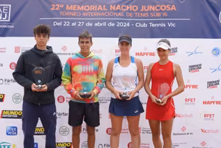 Barcelona, 2 de mayo 2024.- La jugadora española Selena Romero en categoría femenina y el también español Roberto Pérez en categoría masculina fueron los vencedores del torneo Internacional de tenis sub'16 - 22º Memorial Nacho Juncosa, organizado por la Associació Esportiva Nacho Juncosa y celebrado en las instalaciones del Club Tennis Vic.