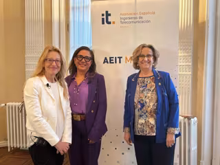 Inmaculada Sánchez Ramos y María José Monferrer profundizaron en el rol fundamental del ingeniero de telecomunicación, quien, con sus conocimientos especializados, es clave para diseñar y gestionar soluciones tecnológicas que optimicen el funcionamiento de estas infraestructuras. Estas soluciones son esenciales no solo para mejorar la eficiencia energética y potenciar la conectividad, sino también para garantizar la sostenibilidad, reducir las emisiones de CO₂, mejorar la calidad del aire interior y adaptar los edificios a las demandas del futuro. Asimismo, se abordaron los principales desafíos en la implantación de infraestructuras inteligentes, entre ellos la escasez de mano de obra calificada, la necesidad de interoperabilidad entre sistemas, la protección de datos y la ciberseguridad.