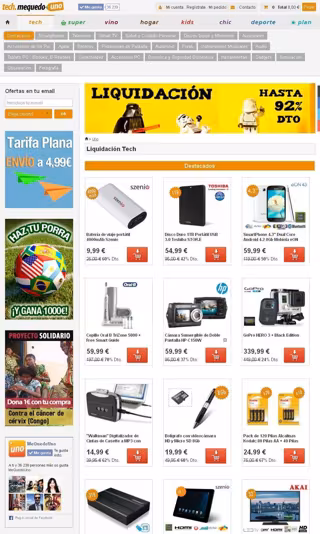 MeQuedoUno cuenta actualmente con ocho tiendas especializadas: tech.mequedouno, outlet de productos tecnológicos; vino.mequedouno (vino, licores y productos gourmet); hogar.mequedouno (menaje, decoración y jardinería); kids.mequedouno (ropa infantil, juguetes y artículos de puericultura);chic.mequedouno, especializado en complementos de moda y productos de cosmética y perfumería de primeras marcas y deporte.mequedouno, con productos deportivos y de ocio; mequedosuper.com, un nuevo modelo de compra de supermercado basado en la venta de productos de gran consumo y primeras marcas con elevados descuentos y plan.mequedouno, dedicado a ofertas de ocio y tiempo libre.