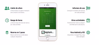 Así funciona MyTurn La aplicación MyTurn regula y controla quién está en la instalación limitando el aforo a lo que se indica en la normativa sanitaria. De ese modo, los vecinos que quieran acudir a su piscina comunitaria deben reservar su turno accediendo a la app. La misma le dará la reserva para un rango de tiempo, permitiendo así que todo el que quiera pueda disfrutar del espacio de ocio sin superar aforo.