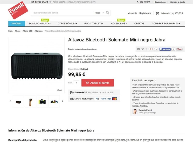 Fonnk también destaca por un proceso de compra ágil permitiendo en mínimos pasos realizar el pago; y dos métodos de envío a España y Portugal que según la necesidad de los usuarios puede ser, envío gratis a domicilio a partir de 20€ con entrega entre 48 y 72 horas y envío en 24 horas a domicilio.