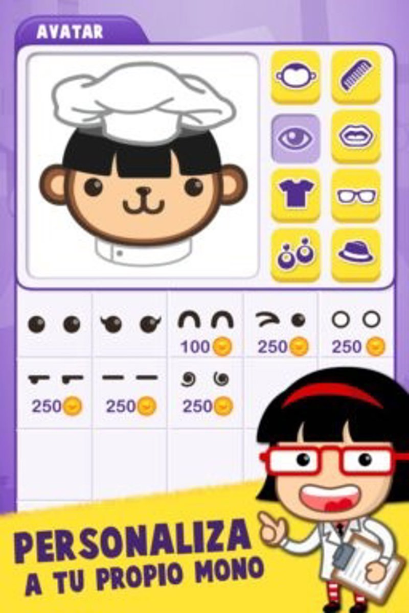 En Mico Academy también podrás crear tu propio mono con la apariencia que más te guste. Cuanto más juegues, más monedas podrás obtener para gastar en trajes, peinados, caras, complementos y muchas cosas más. Haz la combinación más simpática y todos tus amigos verán como es tu estilo.
