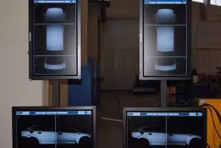 El equipo de adquisición de imágenes está compuesto por 12 cámaras digitales de alta resolución que las adquieren a una frecuencia de 15 imágenes por segundo. Cada cámara visualiza una parte de la carrocería, con márgenes de seguridad suficientes para que no se pierda ningún defecto sobre la misma. Y por lo que se refiere al subsistema de monitorización, este proporciona información sobre la naturaleza y localización de los defectos a los operarios ubicados en el área de pulido.