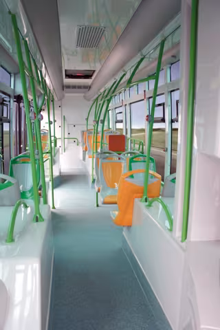 "Podemos mejorar la seguridad si, por ejemplo, ampliamos el pasillo central y la zona diáfana con asientos semi-sitting con función de agarre, , que facilitan el acceso de los viajeros dentro del autobús sobre todo si llevan bolsas o carros, y además les permitirían apoyarse con mayor confort. Aunque ya existen soluciones como los suelos antideslizantes y asideros verticales podemos trabajar en diseños que permiten agarres múltiples a los viajeros que van de pie para tener una buena sujeción a diferentes alturas", apunta José Solaz.