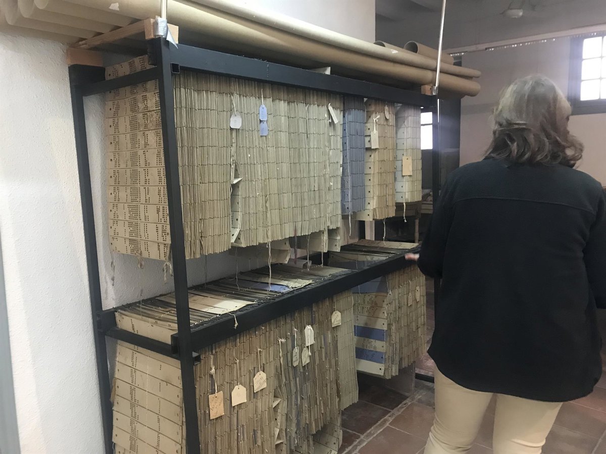 Estas tarjetas perforadas, usadas en los telares tradicionales y las máquinas Jacquard del Siglo XIX de la fábrica Garín 1820, se utilizan para tejer los motivos de seda espolinada de telas eclesiásticas y de fallera en el textil tradicional.