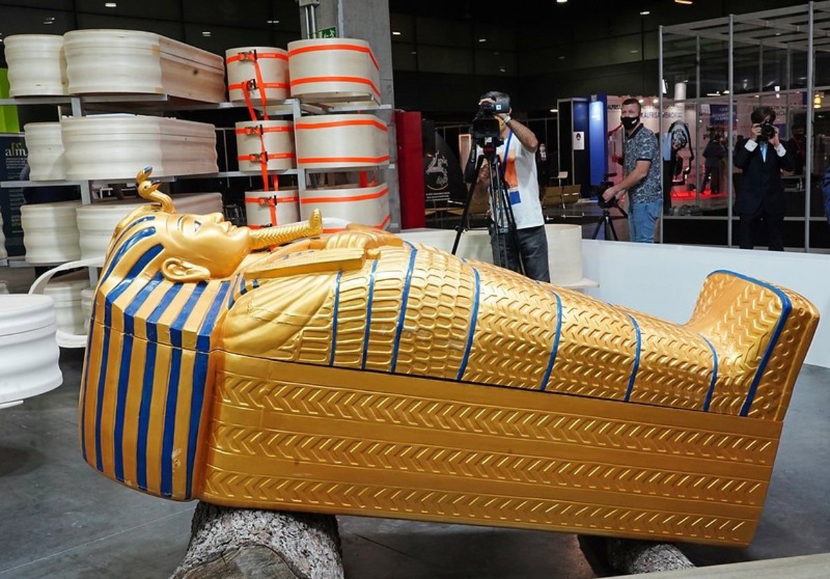 Funermostra, el certamen internacional de productos y servicios funerarios, ha abierto este miércoles su decimosexta edición en Feria Valencia con gran afluencia de visitante profesional y novedades tan curiosas como la réplica del ataúd de la famosa serie de Netflix 'El juego del calamar', la recreación del sarcófago de Tutankamon o unas urnas hechas íntegramente con posos de café.