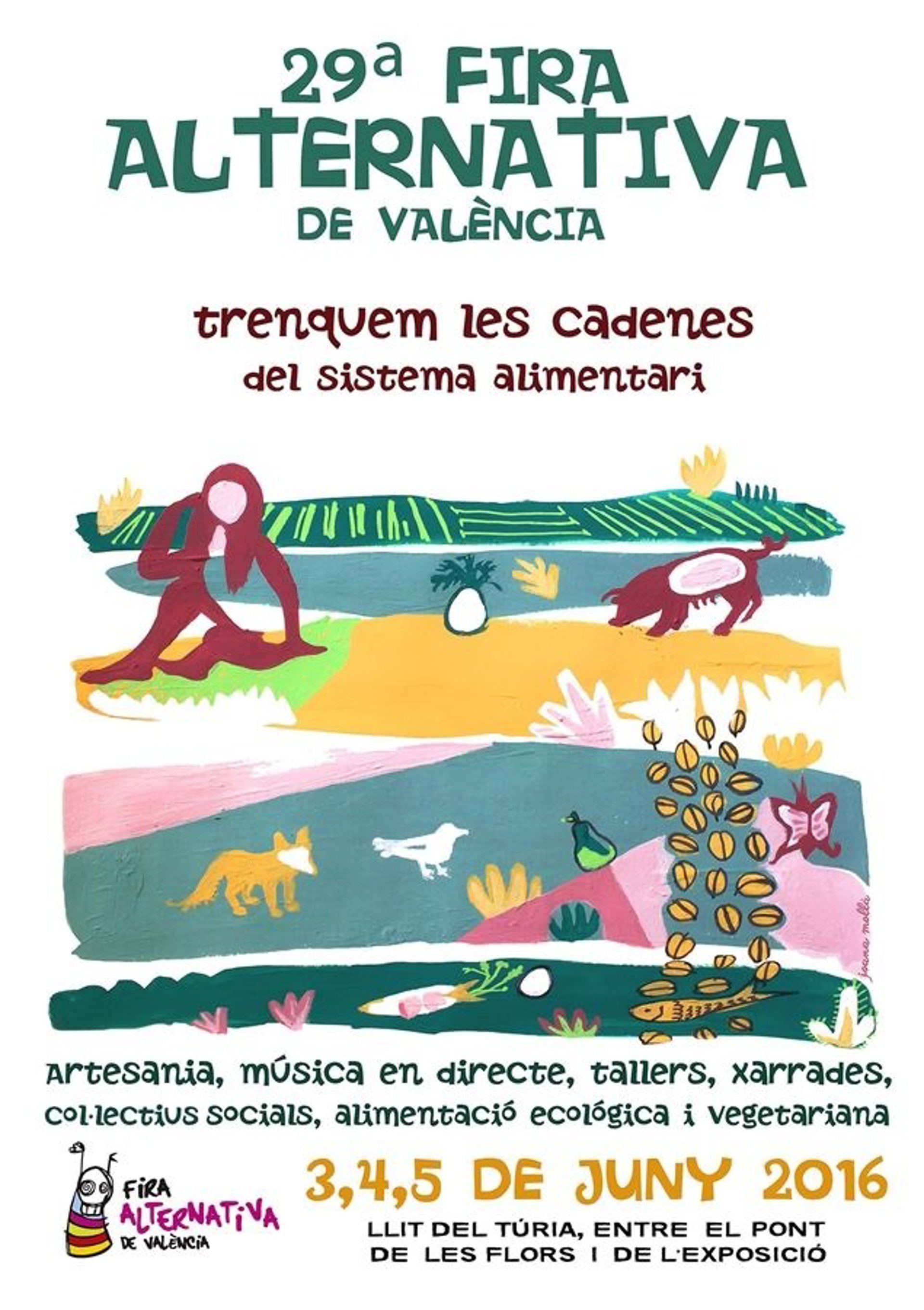 La 29ª edición de la Fira Alternativa llega los para "romper las cadenas del sistema alimentario y defender un nuevo modelo económico basado en la soberanía alimentaria". Los días 3, 4 y 5 de junio se instalará en el viejo cauce del río Turia --entre el puente de la Exposición y el puente de las Flores-- donde ofrecerá talleres, charlas y actuaciones musicales con el objetivo de "demostrar que, una vez más, otro mundo ya está siendo posible".