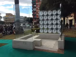 El monumento, que se ha colocado en la esquina de las calles Roís de Corella y Mestre Sosa con Sant Vicent, en el jardín situado sobre la curva donde tuvo lugar el accidente hace diez años, muestra 50 relojes, de los que 43 simbolizan los 43 fallecidos y los siete restantes, servirán de soporte multimedia, para conectar con la web '0responsables.com' o con el blog de la asociación, entre otros contenidos, de forma que ofrezcan información del accidente y de la asociación.