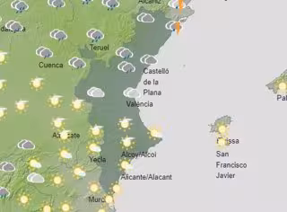 En general, será un domingo con intervalos nubosos en la mitad norte y en el que predominarán los cielos pocos nubosos en la mitad sur. Por su parte, soplará viento moderado a fuerte con probables rachas del noroeste en el interior norte de Castellón y flojo a moderado de componente oeste en el resto. Por la tarde, girará a componente este en el litoral central.