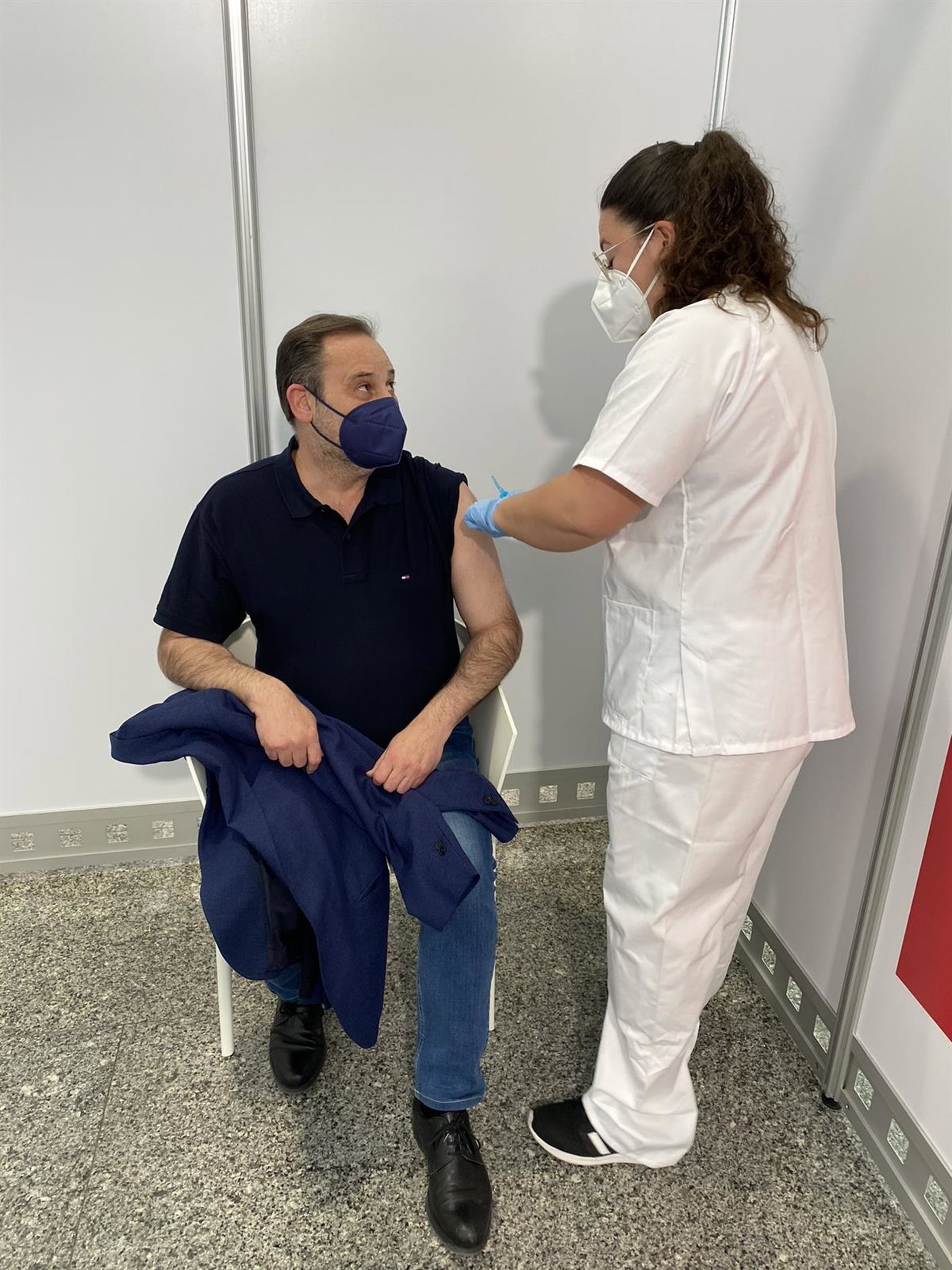 El ministro de Transportes, Movilidad y Agenda Urbana, José Luis Ábalos, ha recibido este lunes por la tarde la primera dosis de AstraZeneca en la Ciudad de las Artes y las Ciencias.