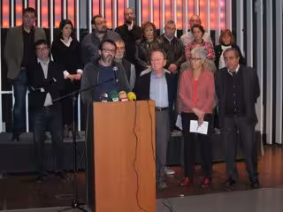 Así lo ha avanzado este martes su presidente, Joan Francesc Mira, durante la lectura de una declaración institucional acompañado del fundador de ACPV, Eliseu Climent, los miembros de su junta directiva, la presidenta de Òmnium Cultural, Muriel Casals, y representantes sindicales y de los grupos de la oposición como Josep Moreno (PSPV), Enric Morera (Compromís) y Marga Sanz (EUPV), entre otros.