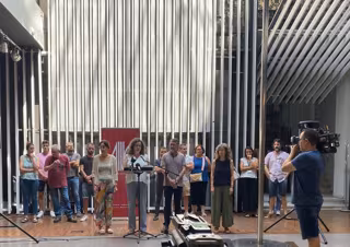 Imagen del acto en el que ACPV ha leído su declaración ante el nuevo contexto político de la Comunitat Valenciana tras el 28M. - ACPV