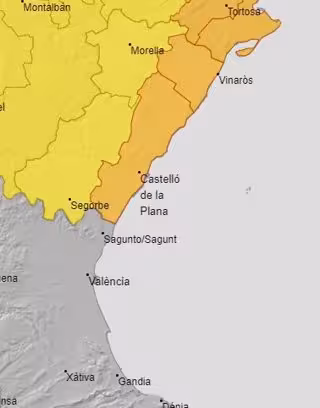 Según la Agencia Estatal de Meteorología (Aemet), el litoral de Castellón tiene activo el aviso naranja de 13 a 16 horas de este jueves con tormentas que pueden ir acompañadas de granizo grande, tacha smuy fiertes de viento o chubascos de fuertes a muy fuertes. Aemet observa tormentas muy fuertes en la comarca de la Plana Alta.