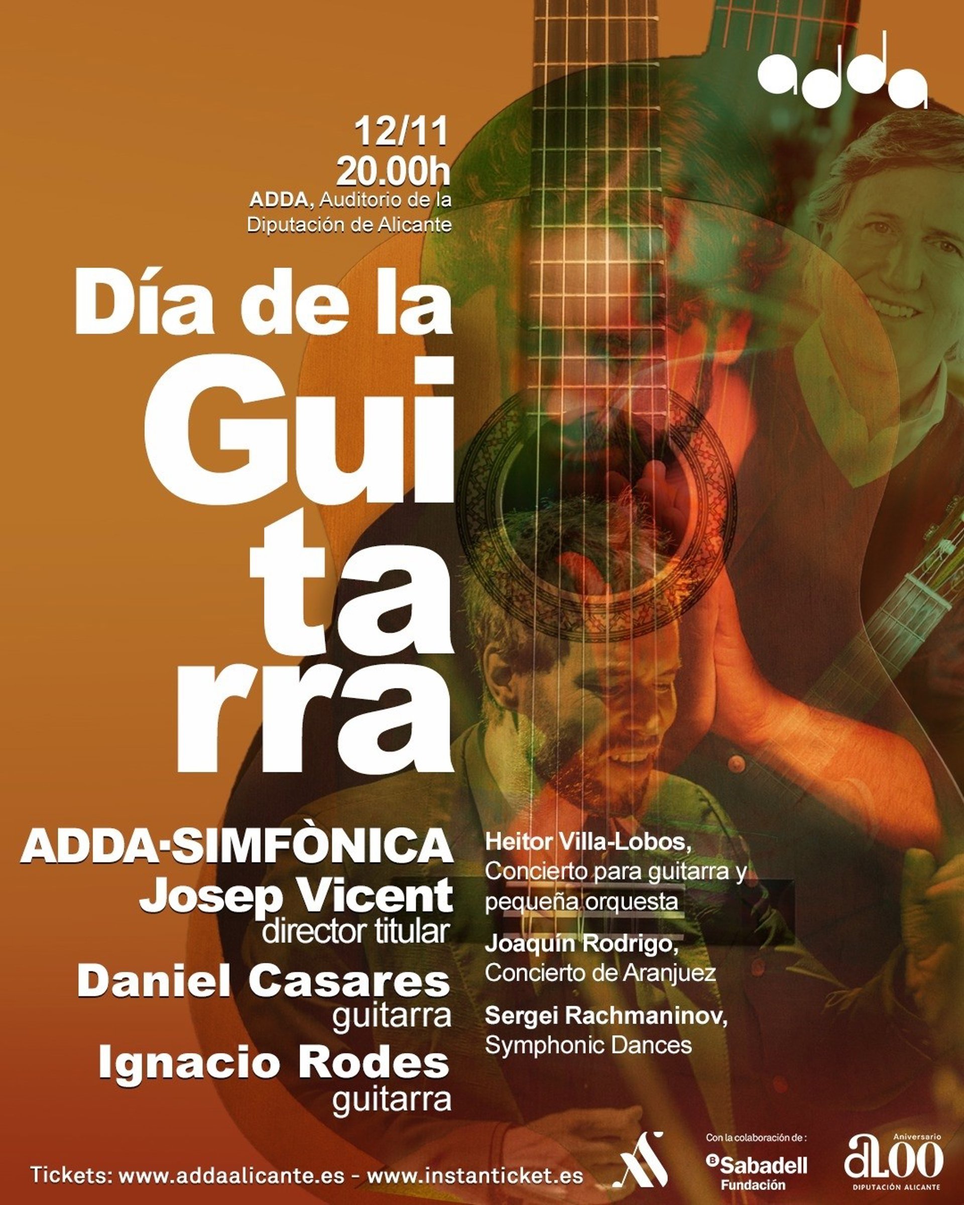 Por su parte, el director del ADDA, Josep Vicent, ha afirmado que "se trata de una ocasión excepcional para disfrutar de dos grandes maestros y de la fusión de la visión de la guitarra desde la perspectiva más folk y desde la perspectiva sinfónica, con El concierto de Aranjuez de Rodrigo y el Concierto para guitarra y pequeña orquesta de Villa-Lobos, y de la enorme energía de las Danzas Sinfónicas de Rachmaninov, que cerrarán el programa".