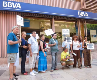 Por otra parte, varias personas convocadas por Adicae se han concentrado a las puertas de la sede del BBVA de la Rambla Méndez Núñez de Alicante, situada frente a la sede del Banco de España en la capital alicantina, en protesta "contra las abusivas cláusulas suelo hipotecarias, que llevan varios años impidiendo a casi cuatro millones de hipotecados beneficiarse de las bajadas del Euribor", tal y como ha señalado la portavoz.