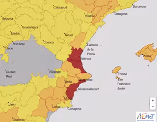 En esta jornada de sábado hay aviso rojo para todo el litoral de la provincia de Valencia y el sur de Alicante y avisos también por tormentas que pueden dejar rachas muy fuertes de viento.