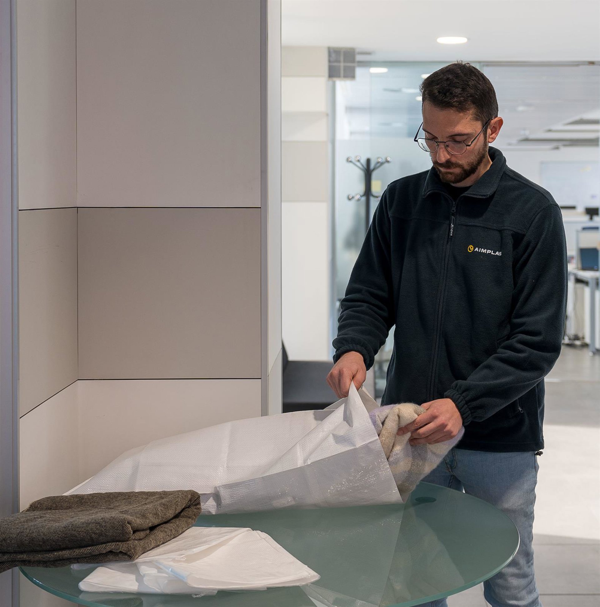 Además, el centro tecnológico ha formulado un segundo recubrimiento que incorpora material reciclado que se ha aplicado a 500 sacos más que contendrán mantas.