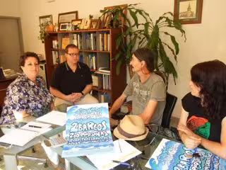 La alcaldesa de Aspe (Alicante), Nieves Martínez y el concejal de Educación, Sergio Puerto, se han reunido este miércoles con los delegados de la campaña 'Rumbo a Gaza' de la provincia de Alicante, entre ellos, el cooperante Javier Andreu, miembro de la Flotilla Libertad II rumbo a Gaza antes de partir hacia allí.