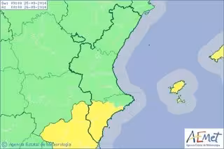 La alerta amarilla por tormentas, riegso, se ha reducido este jueves a la provincia de Alicante, donde se esperan chubascos moderados localmente fuertes preferentemente en la mitad sur, mientras que en el resto de la Comunitat Valenciana ya se ha retirado, según ha informado la Agencia Estatal de Meteorología (Aemet).