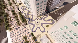 Para ello se proyecta una plaza peatonal que se abre a la Explanada que configurará como un espacio accesible, diáfano e interactivo, que se caracterice y entregue a la ciudad diferentes imágenes según el día del año y la hora del día gracias a la presencia de un conjunto de iluminación y fuentes interactivas programadas.