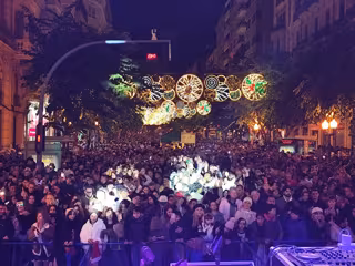 A las 10.000 personas que vivieron la despedida de 2025 y la entrada del Año Nuevo, se sumaron a las 9.000 de la Nochevieja Infantil celebrada al mediodía, y que llenaron el perímetro que discurre desde La Rambla, calle Altamira y Plaza del Ayuntamiento, según fuentes de la Policía Local, en una celebración que discurrió en un ambiente festivo.