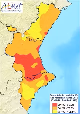 Así, se desprende del balance del año hidrológico que revela que todas las comarcas presentaron déficit pluviométrico. En concreto, la que presentó un mayor déficit fue la valenciana de la Vall d'Albaida donde sólo se ha acumulado el 40% de lo normal, lo que supone un déficit del 60%, seguida de la Ribera Baixa, donde ha llovido un 46% de lo habitual.