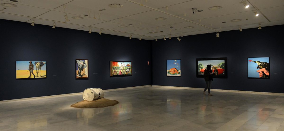Ya en la entrada de la muestra se puede percibir la vertiente de compromiso político y social de Ballester, con las primeras obras como 'Érase una vez', en la que se aprecia el antagonismo de clases en las diferentes etapas históricas o 'El entierro del estudiante Orgaz', en el que con una referencia al Greco, representa lo que fue la represión franquista contra el movimiento estudiantil.