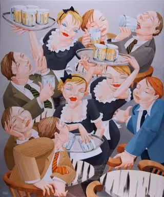 Traspasando lo aparente, su mirada curiosa y tierna enfoca las situaciones cotidianas, las relaciones y pequeños gestos que constituyen la esencia de la vida: desde el bullicio de sus músicos y salas de baile hasta la intimidad de las parejas, temas a los que recurre con un uso del color desmedido y sin complejos.