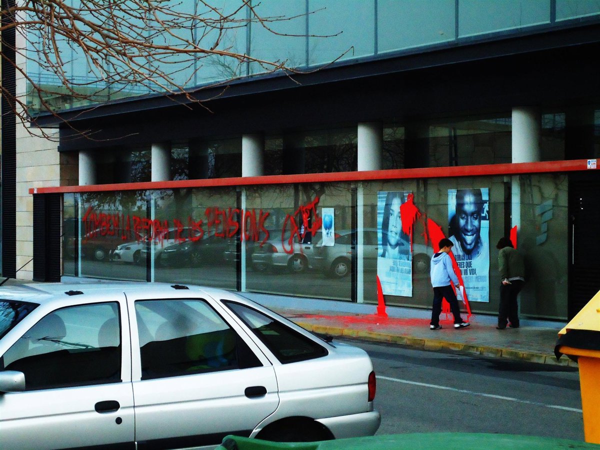 Este colectivo, en un comunicado, ha asegurado que diversos militantes de la Cajei "atacaron" el edificio de la Seguridad Social de Sueca realizando una pintada con el lema 'Tombem la Reforma de les Pensions' y lanzando pintura roja en protesta por la inminente aplicación por parte del Gobierno central de la reforma de las pensiones.