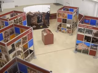 Una escenografía complementaria recrea el ambiente de un pueblo abandonado junto a más de 2.200 fotografías. Completan la exposición tres vitrinas y aproximadamente unos 50 objetos de la vida cotidiana de las personas que vivían y trabajaban en estos lugares.