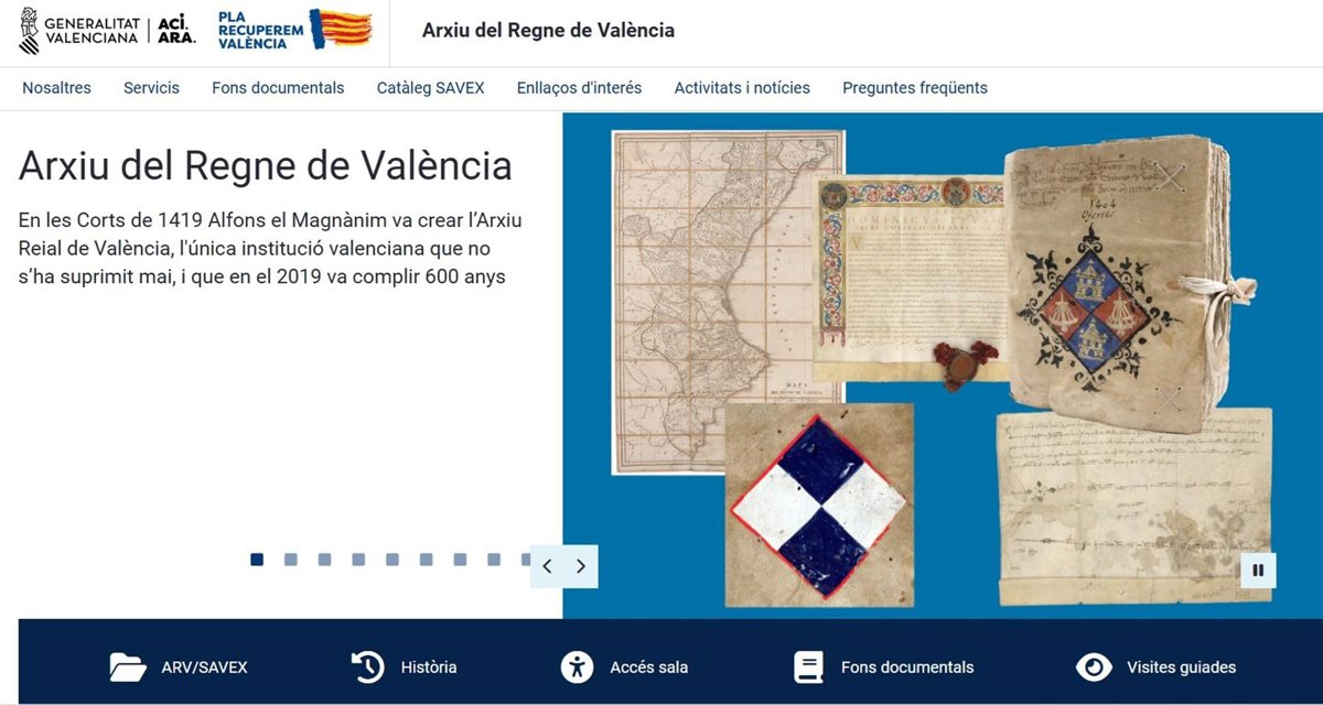 El Archivo del Reino de Valencia, dependiente de la Dirección General de Cultura, ha puesto en marcha una página web propia, que se convierte en el primer archivo de la Generalitat en ofrecer este servicio. Así, la administración autonómica ha subrayado que a través de este portal "se mejora la difusión y el acceso al patrimonio documental valenciano".