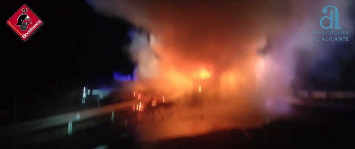 Un camión que transportaba yogures ha quedado totalmente calcinado tras volcar en la A-31, en la localidad alicantina de Novelda, según ha informado el Consorcio Provincial de Bomberos.