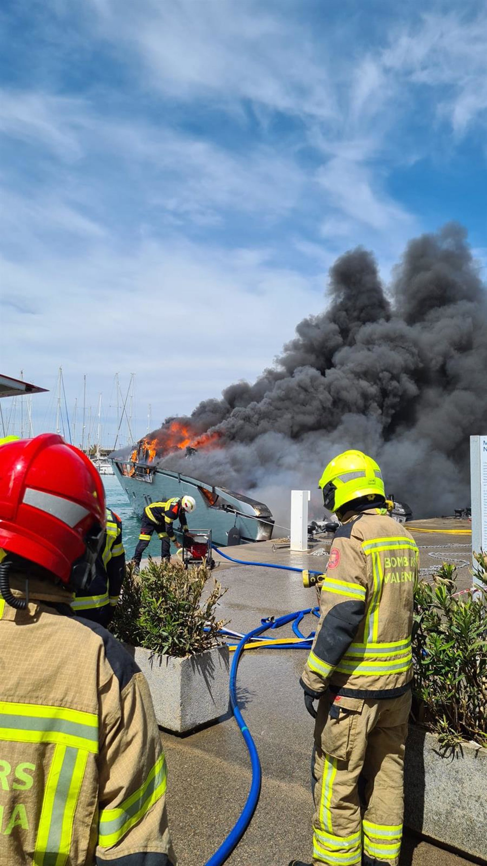 Tres dotaciones de bomberos del Ayuntamiento de Valncia se han movilizado al Puerto para sofocar el incendio de una embarcación de recreo de 27 metros de eslora, informa el 112.