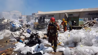 Un incendio calcina desde este miércoles por la mañana una planta de reciclaje del polígono Fuente del Jarro de Paterna (Valencia).