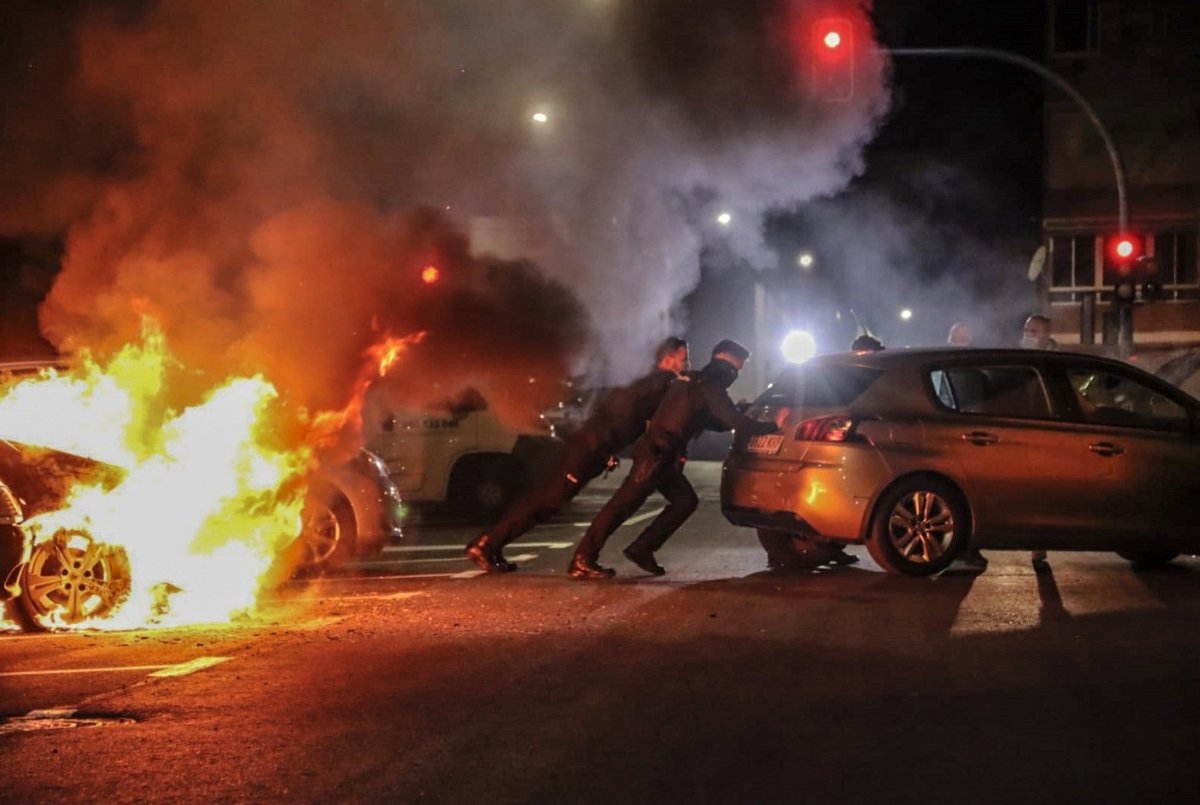 Los agentes cortaron el tráfico de la vía y retiraron varios vehículos para evitar que se vieran afectados por las llamas, mientras los bomberos iniciaban las tareas de extinción.
