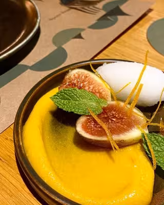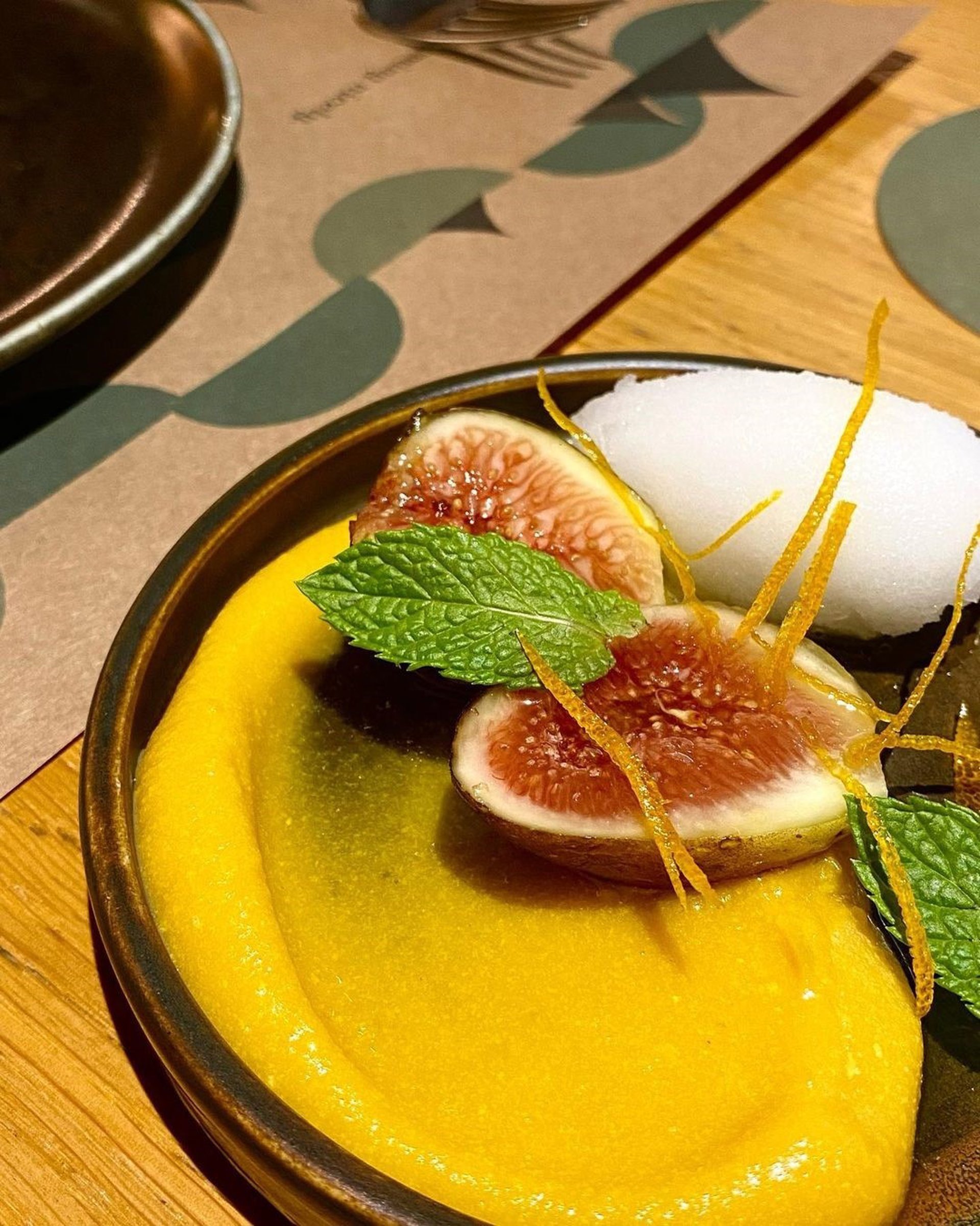 Innovación y tradición gastronómica que se podrá degustar en platos como bombón de queso y croqueta de bacalao con naranja, titaina del Cabanyal, paella de puchero, rebollones con vellute de cebolla y tomillo con cremoso de naranja y ají, muselina de naranja con mini torrija o sablée de pera y almendra Marcona con chantilly de mascarpone.