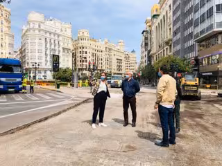 Las obras en la Plaza del Ayuntamiento de Valncia para su peatonalización han arrancado este lunes, tal y como estaba previsto, y culminarán en una semana: "Es un tipo de plaza donde mandaban los coches y ahora pasamos a otra en la que mandarán los peatones".