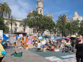 En la asamblea, las distintas comisiones anunciaron su postura sobre la continuidad de la acampada y su permanencia en la plaza. Las de Comunicación (prensa y medios, comunicación audiovisual y redes sociales) destacaron la distinción entre el movimiento 15M Valencia --barrios, pueblos y la marcha a Madrid-- y la acampada de la plaza, para anunciar que no iban a permanecer físicamente allí.
