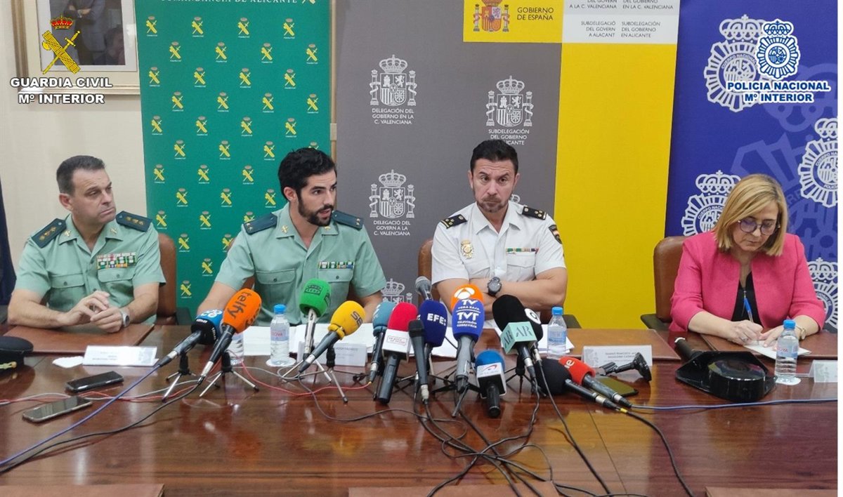Así lo han revelado responsables de la Guardia Civil y de la Policía Nacional, que en una operación conjunta han conseguido esclarecer los crímenes, uno en grado de tentativa, cometidos entre julio y noviembre del año 2020 en la provincia de Alicante. En el acto han participado la subdelegada del Gobierno, Araceli Poblador, el comisario jefe provincial de la Policía Nacional, Manuel Lafuente, el coronel de la Comandancia de la Guardia Civil de Alicante, José Hernández Mosquera, y los responsables de la investigación de ambos cuerpos.