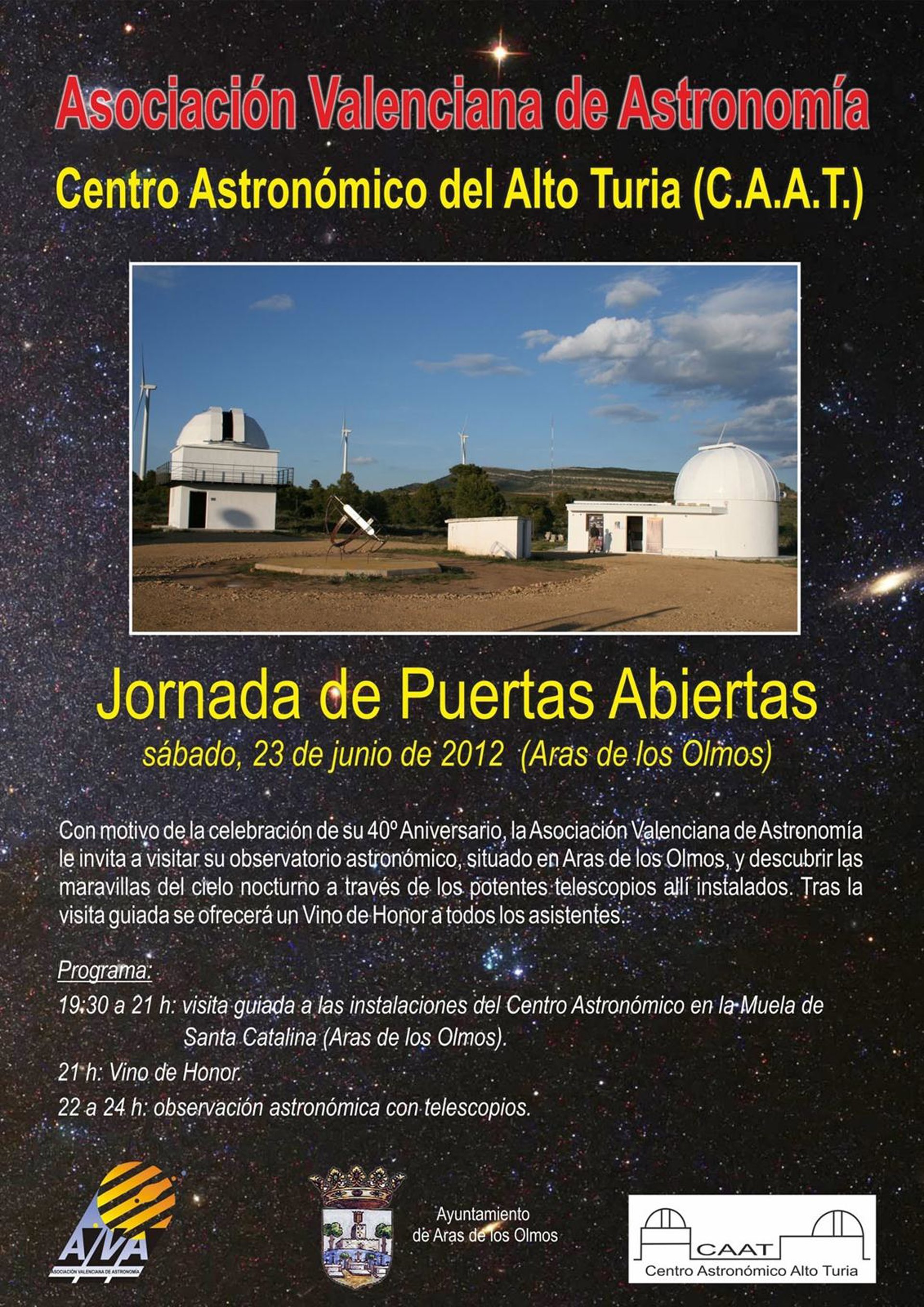 La Asociación Valenciana de Astronomía (AVA) organiza este sábado una jornada de puertas abiertas en su observatorio de Aras de los Olmos (Valencia), conocido como Centro Astronómico del Alto Turia, con motivo de la celebración de su 40º aniversario.
