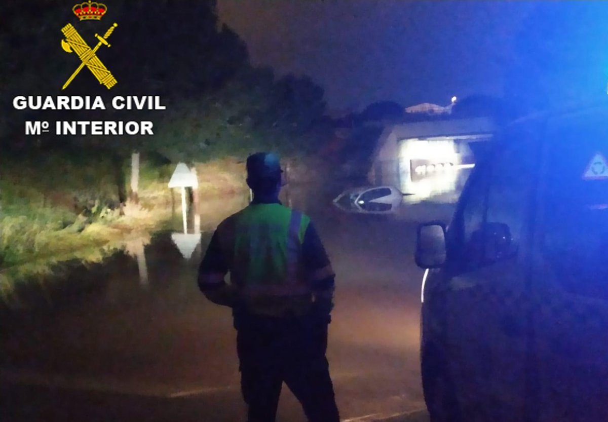 Agentes del Subsector de Tráfico de la Guardia Civil de Valencia, en colaboración con efectivos del Consorcio de Bomberos, auxiliaron a última hora de este lunes a tres personas atrapadas en un paso a nivel inundado en Sagunto, como consecuencia de las precipitaciones caídas a lo largo de la jornada.
