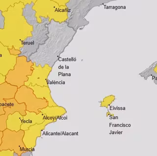 En concreto, según la Agencia Estatal de Meteorología (Aemet), se ha activado el aviso naranja por temperaturas a partir de las 13 horas en el interior de la provincia de Valencia. Desde la misma hora, hay aviso amarillo en el litoral norte, litoral sur e interior de Alicante y en el litoral norte y litoral sur de Valencia.
