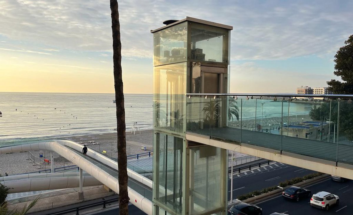 Imagen del ascensor situado junto a la pasarela de la playa del Postiguet, en la ciudad de Alicante - COCEMFE ALICANTE